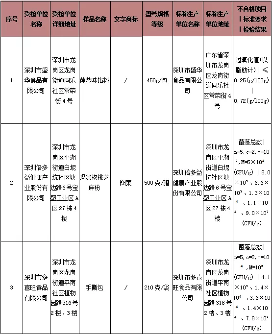 本次共抽檢生產(chǎn)環(huán)節(jié)食品291批次,涉及生產(chǎn)環(huán)節(jié)經(jīng)營主體168家次,共檢測食品指標3219項次。其中檢出不合格樣品3批次,涉及不合格食品類別有其他食品1批次,方便食品1批次,糕點1批次;涉及不合格項目類別為微生物污染、品質(zhì)指標。