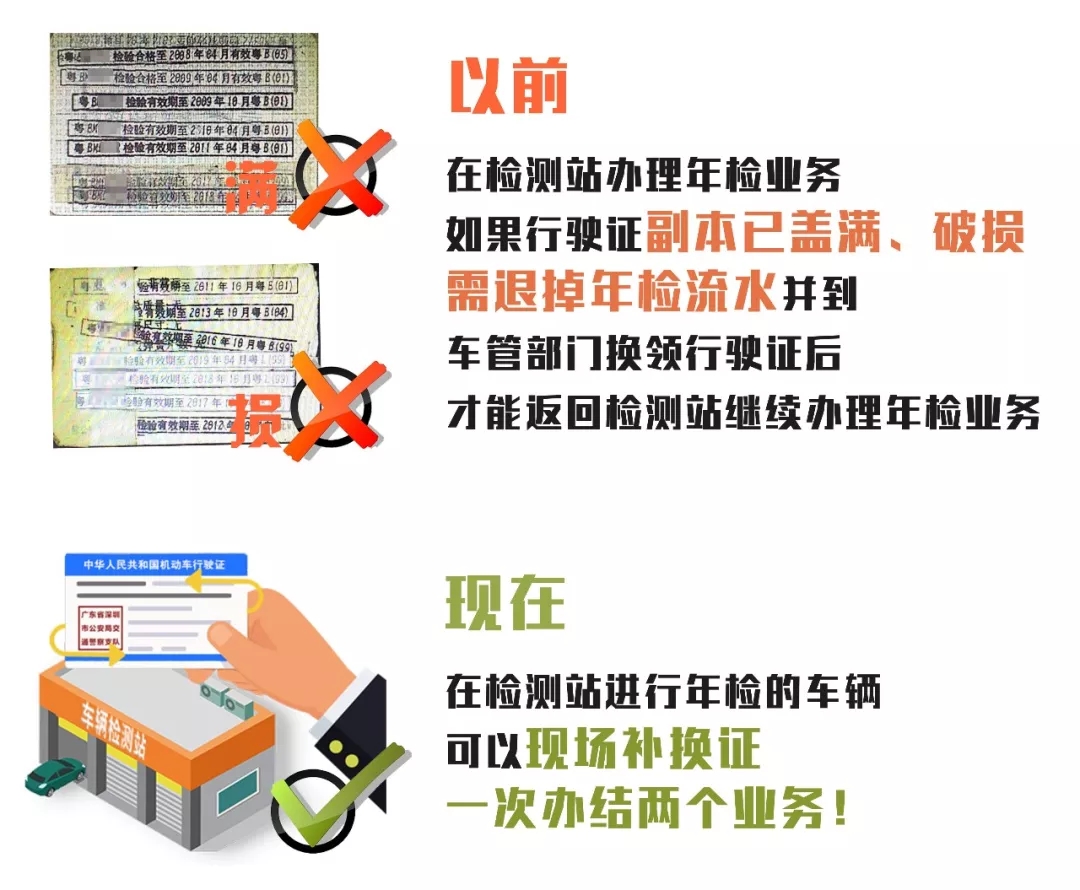 深圳新聞網(wǎng)2019年7月16日訊(記者 劉曉宇)7月16日,記者從市車(chē)管所了解到,為深入貫徹落實(shí)公安部“放管服”改革工作部署,深圳市車(chē)管所進(jìn)一步推行交管業(yè)務(wù)延伸下放,實(shí)現(xiàn)檢測(cè)站提交資料、網(wǎng)上繳費(fèi)、現(xiàn)場(chǎng)出證一站式辦結(jié)補(bǔ)換領(lǐng)行駛證業(yè)務(wù)。