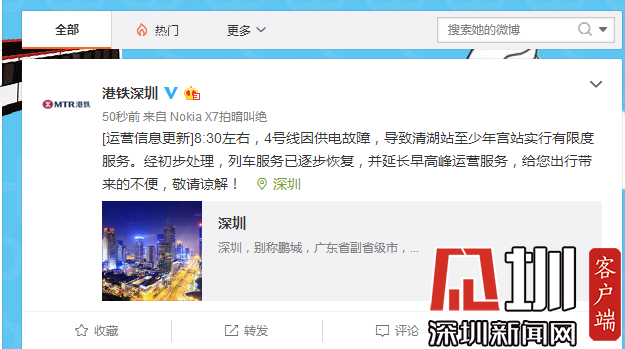 深圳新聞網(wǎng)2019年7月25日訊(見(jiàn)圳客戶端、深圳新聞網(wǎng)記者 韓翔 )7月25日早上,地鐵4號(hào)線出現(xiàn)故障,導(dǎo)致部分乘客延誤?!案坭F深圳”發(fā)微博稱目前列車已逐步恢復(fù)服務(wù)。但據(jù)站內(nèi)廣播通知:由于供電故障,深圳地鐵4號(hào)線前往福田口岸的列車終點(diǎn)站更改為少年宮站。正值上班高峰期,記者在上塘地鐵站內(nèi)看到大量乘客滯留。