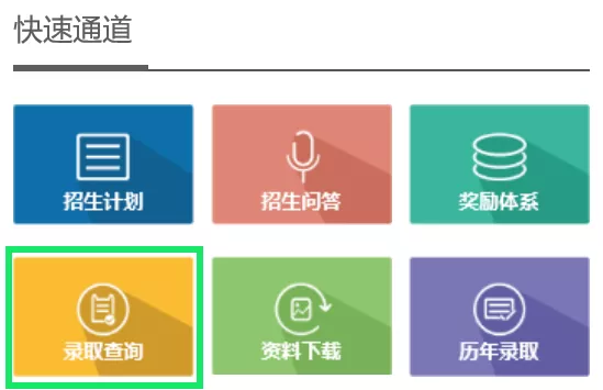 滾動(dòng)鼠標(biāo)下拉找到位于頁面右側(cè)的快速通道,點(diǎn)擊“錄取查詢”。