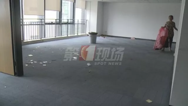 空蕩蕩又安靜的空間里只有一位女士在打掃衛(wèi)生,她說自己一直給這家公司兼職做清潔,28日晚接到該公司領(lǐng)導(dǎo)電話,讓她29日早上來公司打掃一下,可她的工資目前還在被拖欠之中。
