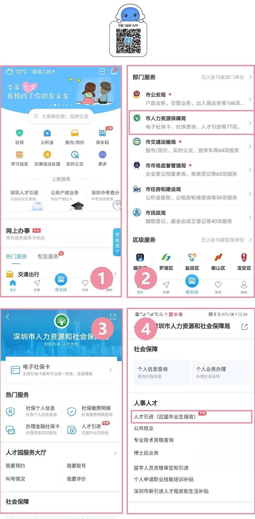 應(yīng)屆畢業(yè)生辦理人才引進(jìn)時(shí),可以選擇下載“i深圳”APP在手機(jī)上辦理,路徑為:“i深圳”首頁-市人力資源保障局-人事人才:人才引進(jìn)(應(yīng)屆畢業(yè)生接收)。