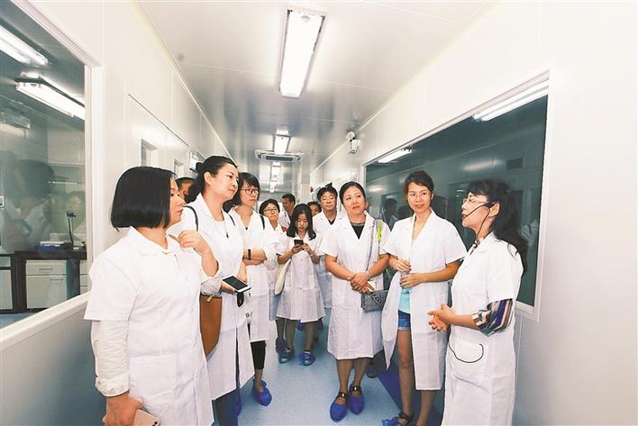 2018年,王多加(右一)在深圳市農(nóng)產(chǎn)品質(zhì)量安全檢驗(yàn)檢測中心的“實(shí)驗(yàn)室開放日”為市民代表介紹實(shí)驗(yàn)室的檢測工作。