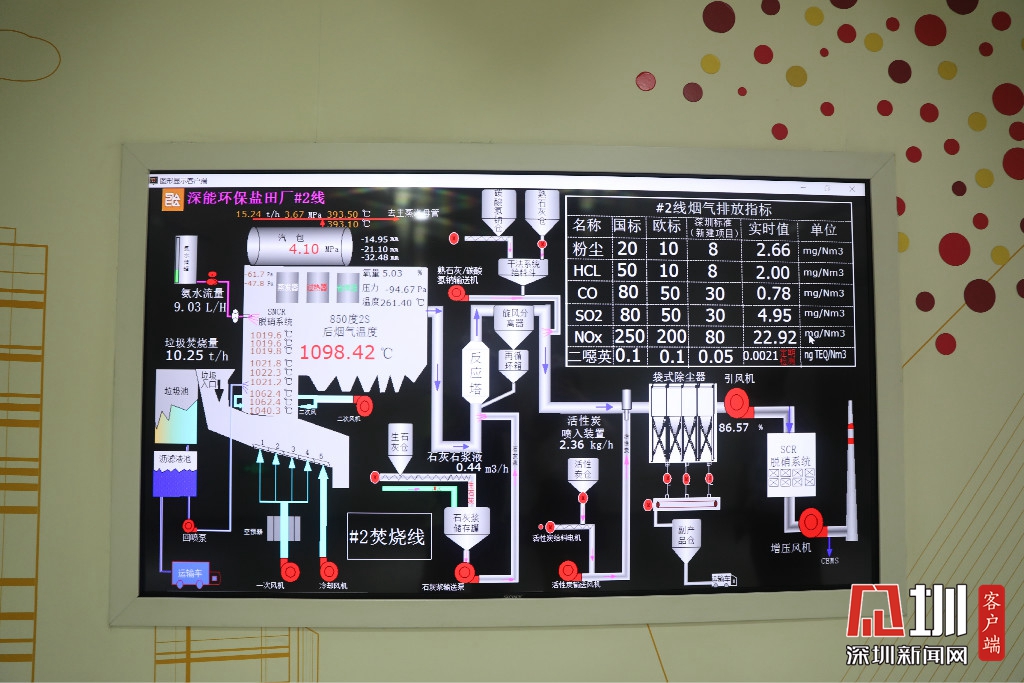 廠內(nèi)還設(shè)有煙氣指標(biāo)電子屏,屏上可以看到粉塵、氯化氫、一氧化碳等多項煙氣排放實時數(shù)值。據(jù)介紹,深圳實行的排放標(biāo)準(zhǔn)遠(yuǎn)遠(yuǎn)高于國家標(biāo)準(zhǔn)和歐盟標(biāo)準(zhǔn)。從發(fā)電廠外望去,從煙囪上方看不到一點煙霧。