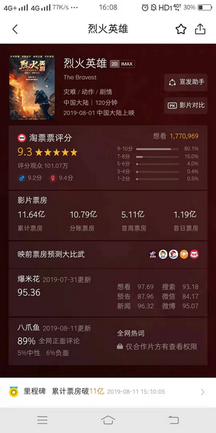 《烈火英雄》票房破10億 或成暑期檔國(guó)產(chǎn)真人電影票房冠軍