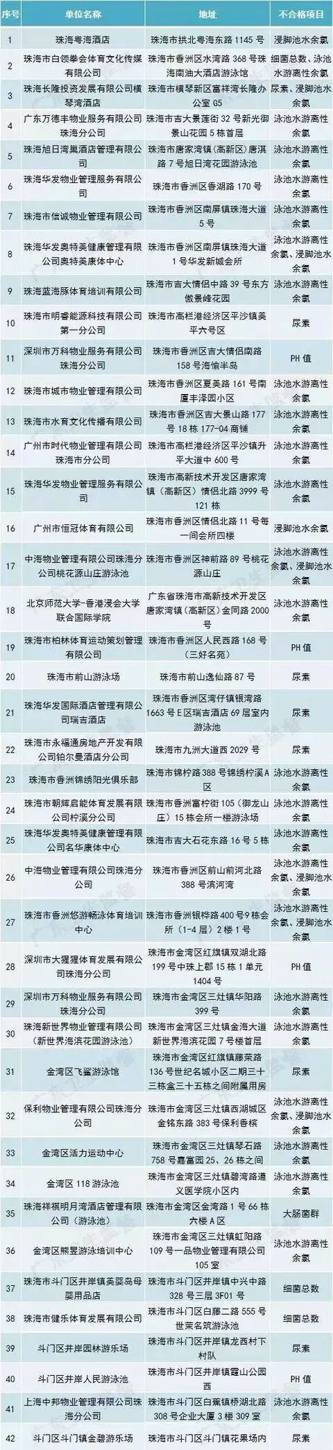 珠海(42家不合格)