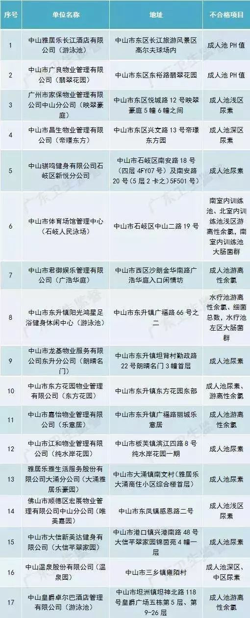 廣東省部分城市游泳場所水質(zhì)抽檢不合格場所名單(第一批)