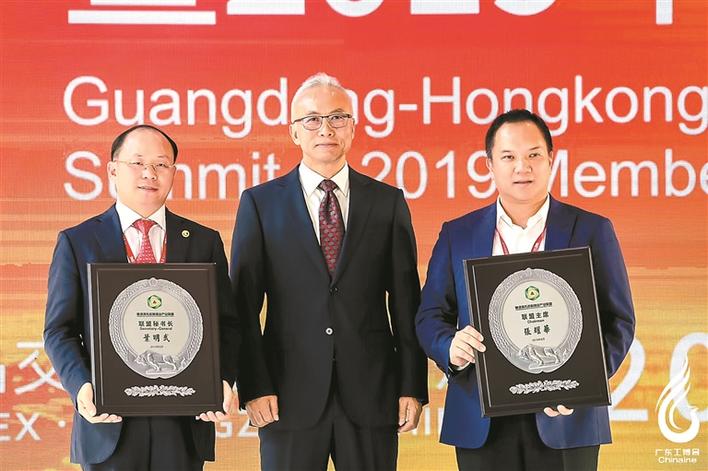 ▲2019年8月8日,中國國際貿(mào)易促進(jìn)委員會(huì)機(jī)械行業(yè)分會(huì)會(huì)長(zhǎng)孫喜田(中)向張耀華(右一)授予粵港澳先進(jìn)制造業(yè)產(chǎn)業(yè)聯(lián)盟主席牌匾。