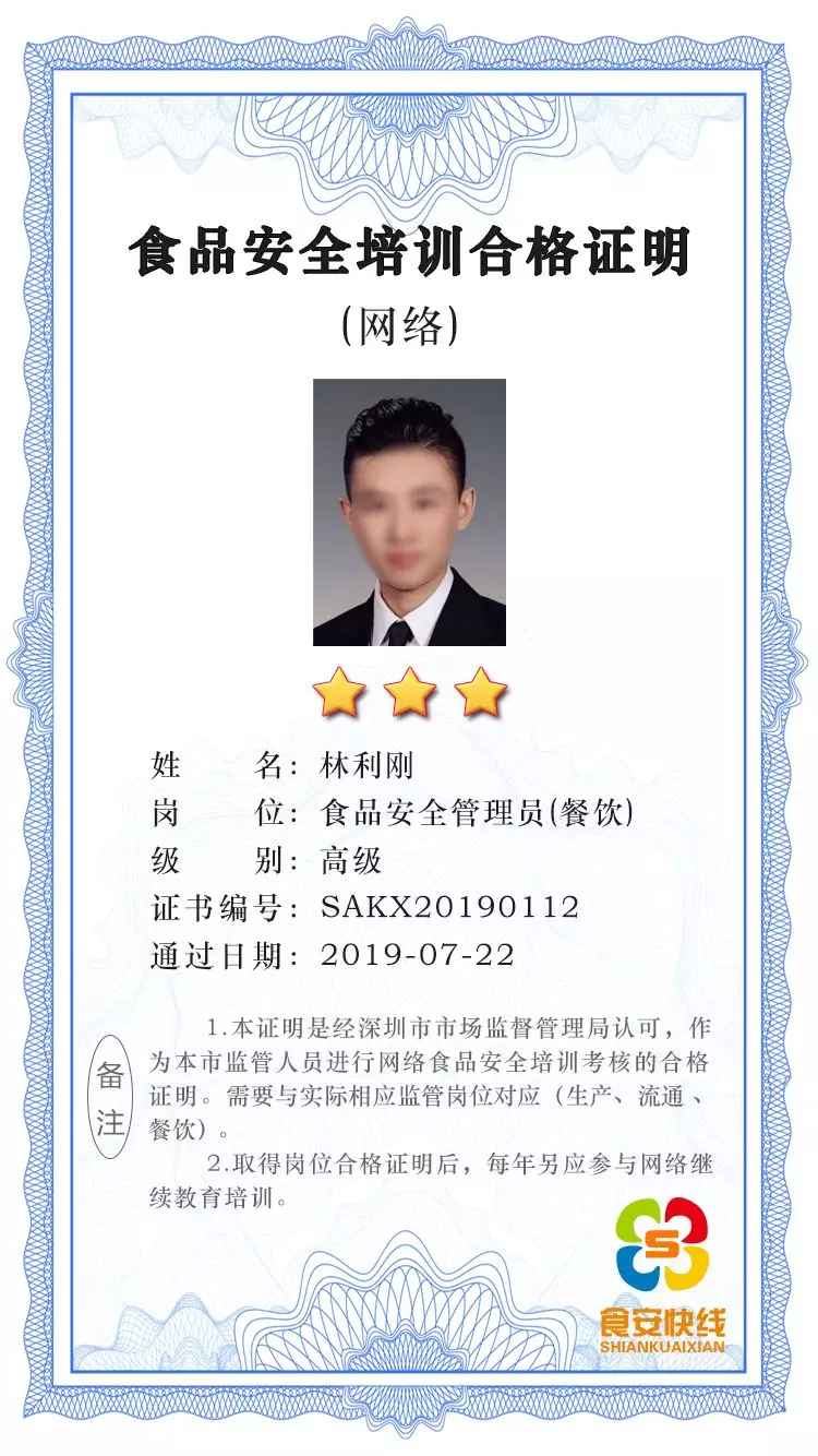 首先:食品安全管理員應(yīng)取得崗位“培訓(xùn)合格證明”;