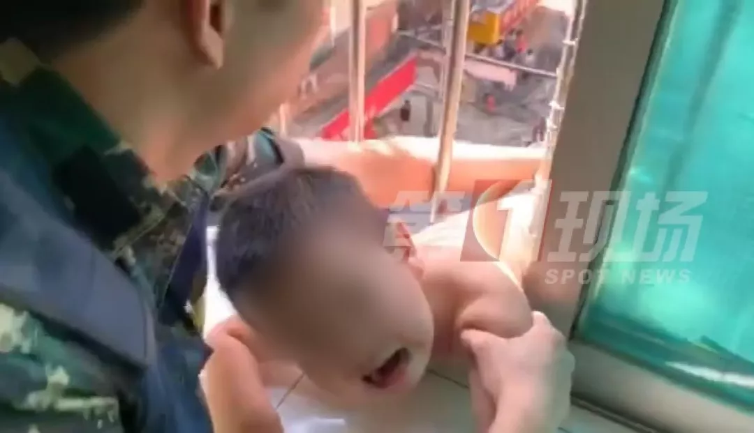 原標(biāo)題:驚險(xiǎn)!兩歲男童身懸半空,關(guān)鍵時(shí)刻,他們一腳破門(mén)!