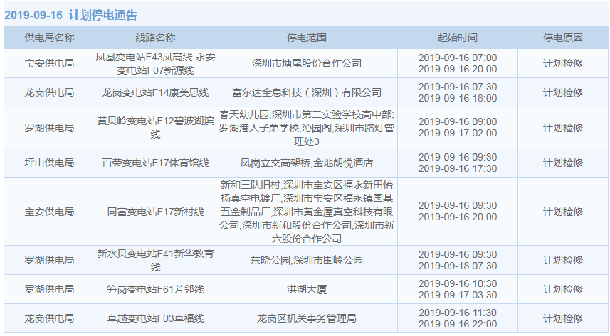 9月5日至20日,深圳這些地方停電!快看影響你家沒