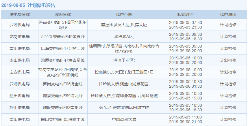 ■溫馨提示:根據(jù)此前報道,5日起至12日,深圳要停電的地區(qū)如下:
