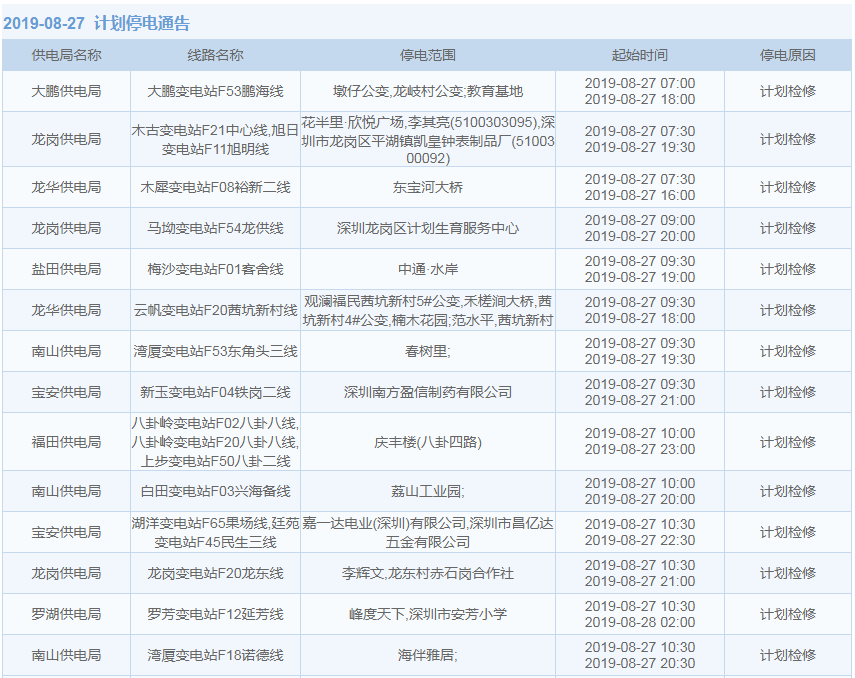 8月27日,今年第12號臺風(fēng)“楊柳”正式生成,雖然其中心還位于距離深圳1570公里的菲律賓以東洋面上,但未來幾天,深圳的悶熱天氣是安排上了。更慘的是,據(jù)中國南方電網(wǎng)消息,8月27日起至9月12日,深圳這部分地區(qū)要停電了!快來看看有沒有你家的吧。