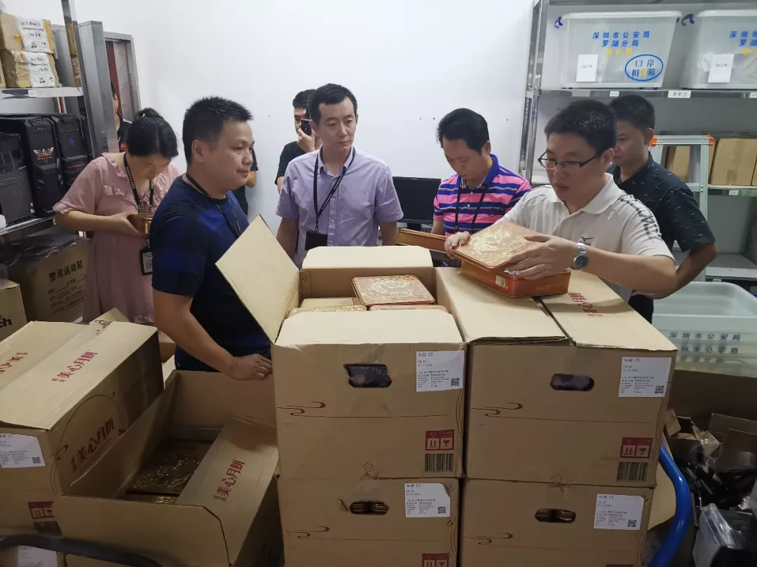 2019年9月3日,深圳市市場(chǎng)監(jiān)管局羅湖監(jiān)管局聯(lián)合公安機(jī)關(guān)連夜查處一跨區(qū)域售賣假冒月餅案,查扣涉嫌假冒品牌月餅近千盒,公安機(jī)關(guān)帶走一名嫌疑人調(diào)查,成功打響中秋節(jié)前“月餅保衛(wèi)戰(zhàn)”。
