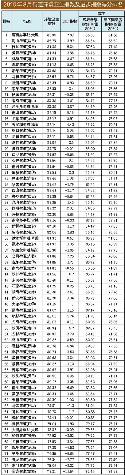 8月份深圳市環(huán)境衛(wèi)生指數(shù)測(cè)評(píng)成績(jī)發(fā)布 鹽田持續(xù)6月位居榜首