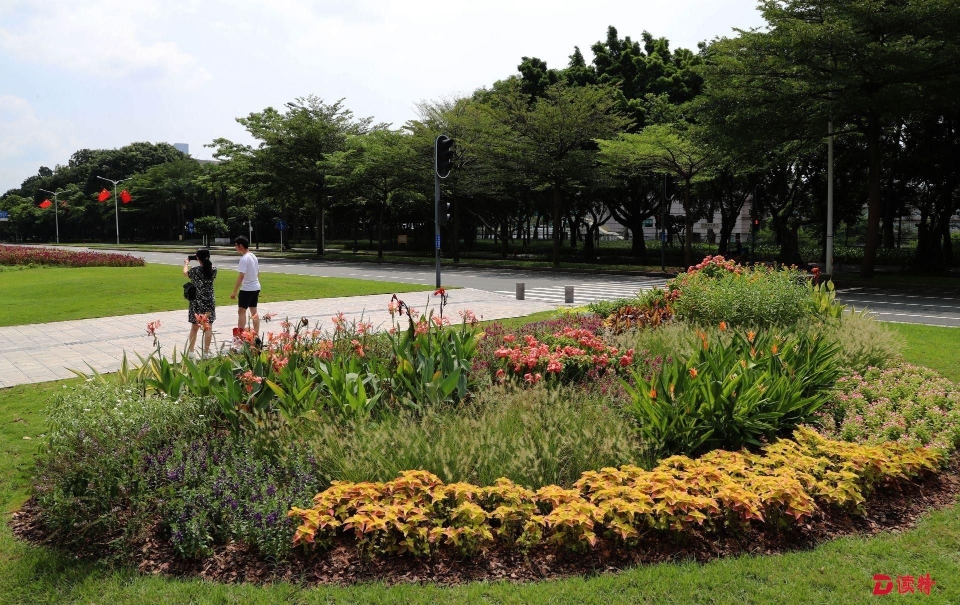 除了花帶,市城市管理和綜合執(zhí)法局還在深南大道行人過馬路的地方新打造了10個花園路口,每個小花園5-10平方米,結合原有路口的景觀設計,融入海綿生態(tài)理念,增加蜜源、觀花和色葉植物,組合成花境,讓在路口等紅綠燈的市民能欣賞到深圳的自然之美。