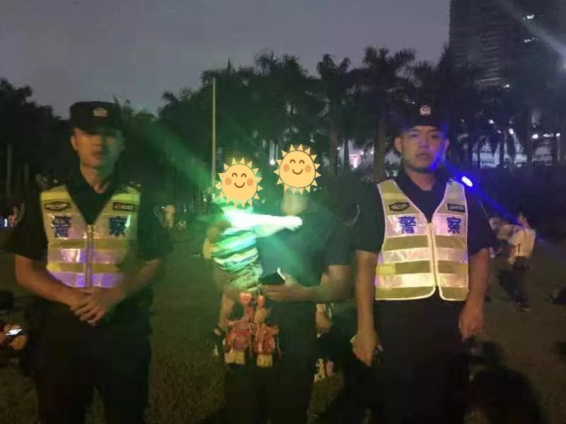中秋夜21時許,深圳市公安局福田分局機動訓(xùn)練大隊四中隊隊員黃俊豪、施裕楓在蓮花山巡邏時,發(fā)現(xiàn)一名兩歲左右的幼童和父母走散了在哭著找媽媽,因小孩年齡太小無法獲取父母的聯(lián)系方式,兩名隊員便一直守護著孩子并在附近尋找其父母,直到找到其父親后送還小孩。