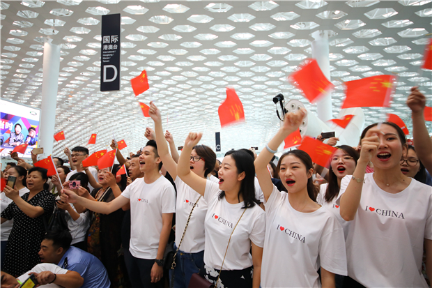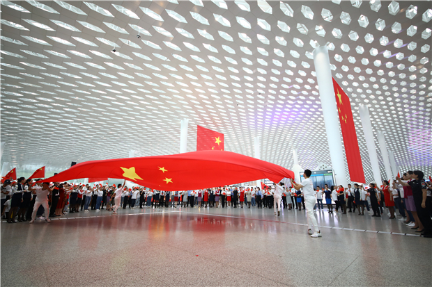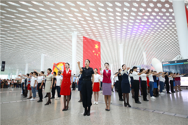 機(jī)場(chǎng)航站樓成“紅色海洋” 他們以這種方式慶祝新中國(guó)成立70周年