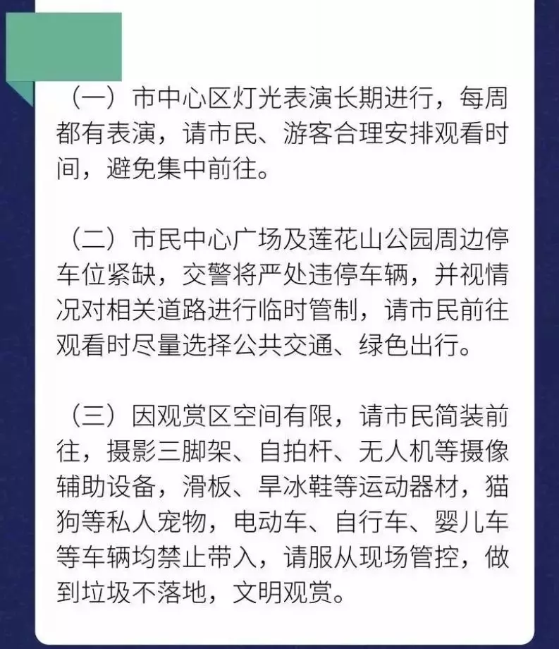 需要注意的是,最后一場(chǎng)燈光秀的播放時(shí)間較之以往有所調(diào)整,播放時(shí)間調(diào)整為21:00,