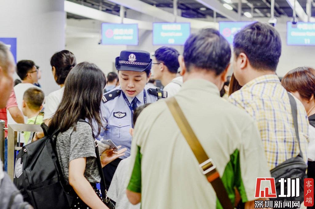 邊檢民警引導(dǎo)旅客快速通關(guān)。