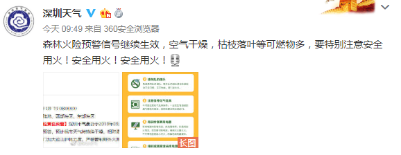 此外,森林火險預(yù)警信號繼續(xù)生效,空氣干燥,枯枝落葉等可燃物多,要特別注意安全用火!