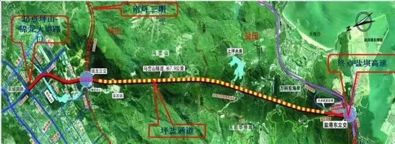 坪鹽通道北起坪山區(qū)現(xiàn)狀錦龍大道坪山大道路口,南至鹽田區(qū)鹽壩高速、鹽港東立交,全長(zhǎng)約11.252公里。
