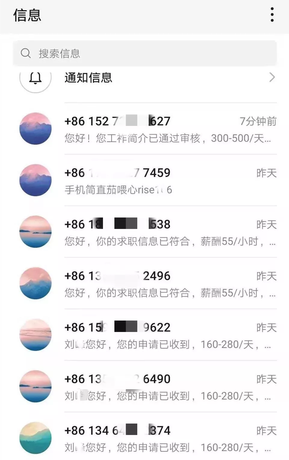 按理,只有注冊(cè)的招聘企業(yè)才能夠獲得求職者的信息。那么求職者的電話是如何流入到騙子手中呢?