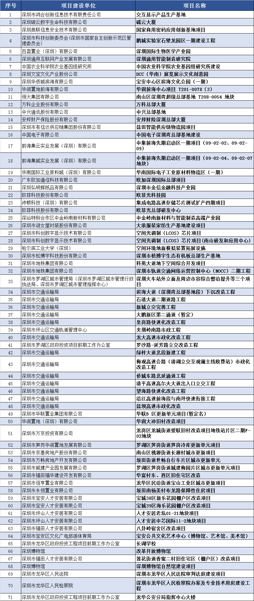 記者注意到,在2019年重大項(xiàng)目(增補(bǔ))名錄中共有71個項(xiàng)目,涵蓋科技、交通、教育、住房等方面,包括寶安中心區(qū)濱海文化公園(一期)、皇崗路快速化改造工程、望海路快速化改造工程、長湖學(xué)校、改革開放博物館、蓮花街道香蜜二村舊住宅區(qū)(棚戶區(qū))改造項(xiàng)目等受到市民廣泛關(guān)注的項(xiàng)目。