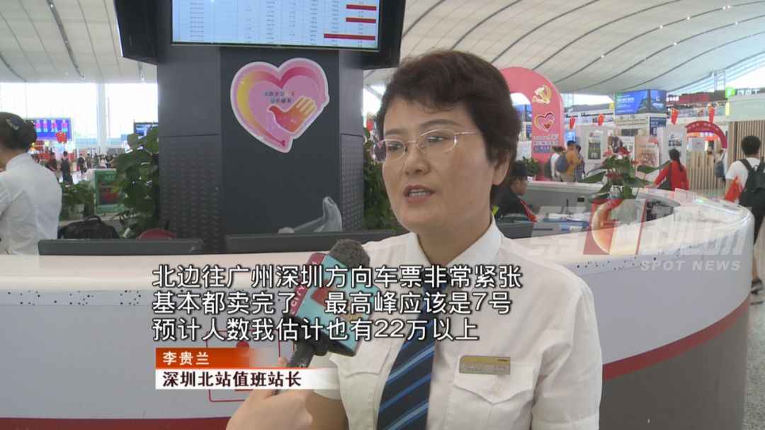 深圳北站值班站長(zhǎng)表示,北站已進(jìn)入客流返程高峰,到達(dá)旅客今天將達(dá)24萬(wàn)人次,10月7日大部分來(lái)往廣深兩地的車票都已售罄,預(yù)計(jì)客流返程最高峰將出現(xiàn)在10月7號(hào)。