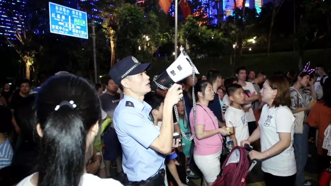 此外,福田公安分局根據(jù)市民中心和蓮花山頂廣場的每日人流負荷情況實時調(diào)整,及時協(xié)調(diào)城管調(diào)控?zé)艄庑悴コ鰰r間并加演,避免人流停滯,緩解疏導(dǎo)壓力。值得一提的是,為了方便市民夜間行走,觀賞區(qū)特地“開辟”了幾條新的應(yīng)急道路,并在所有“黑暗死角”都加裝了應(yīng)急燈。福田公安分局指揮處處長張保軍表示:“在安保警力多次實地巡查后,及時發(fā)現(xiàn)問題并整改、疏通光線不足及堵塞人群的道路,使市民們在觀看完燈光秀后能夠更加安全、快捷地離開。”除此以外,在人流密集的燈光秀現(xiàn)場,孩童走失、物品遺失的情況也有發(fā)生,安保人員不斷地通過廣播尋人、尋物,進行實名登記,盡心盡力地為市民、游客解決切身難題。