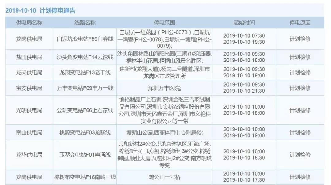因供電局計(jì)劃?rùn)z修,10月9-10日深圳部分地區(qū)將停電,涉及多個(gè)小區(qū),包括新苑小區(qū)、南山花園、云峰花園等。具體停電信息如下↓↓