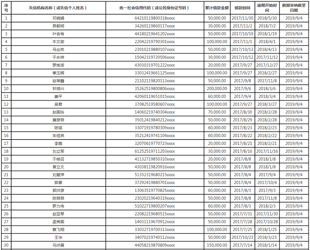 為進一步維護網(wǎng)貸行業(yè)秩序,加強失信懲戒力度,深圳市地方金融監(jiān)督管理局對深圳市互聯(lián)網(wǎng)金融協(xié)會報送的數(shù)據(jù)進行信息整理、資料評估、數(shù)據(jù)篩查后,公布了第一批74名失信網(wǎng)貸借款人的相關信息。