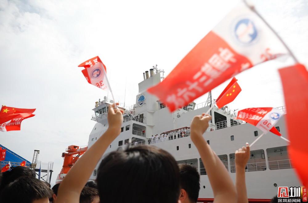 見圳客戶端、深圳新聞網(wǎng)2019年10月13日訊(見圳客戶端、深圳新聞網(wǎng)記者 潘潤(rùn)華 楊浩翰)在振奮人心的“我愛你中國(guó),親愛的母親…”的音樂中,在數(shù)百位市民的歡呼尖叫聲中,一艘大型船舶緩緩駛來(lái),平穩(wěn)靠泊蛇口太子灣郵輪母港。10月13日,為助力2019中國(guó)海洋經(jīng)濟(jì)博覽會(huì),我國(guó)自主建造的首艘極地科考破冰船“雪龍2”號(hào),順利抵達(dá)深圳蛇口郵輪母港CR2碼頭。