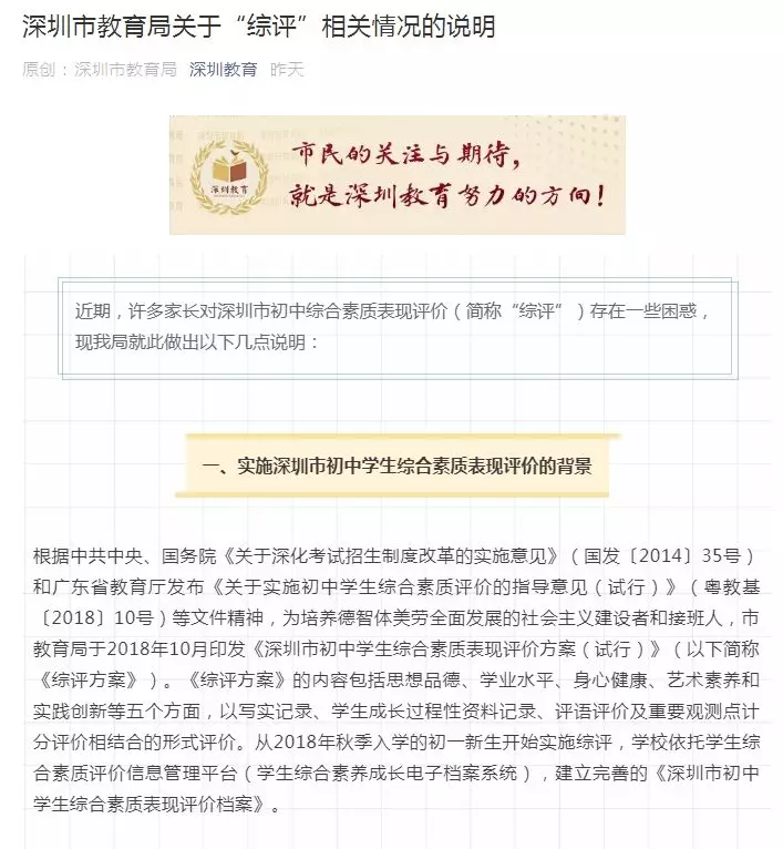 中考必須做義工?深圳市教育局回應:綜評結果將不計入中考總分