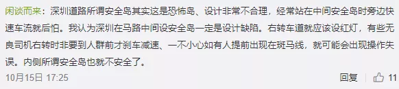那么,安全島能不能做到相對(duì)更安全呢。目前深圳很多安全島闊度低于1.5米的國際安全標(biāo)準(zhǔn),一旦難以容納等候過路的行人,車流就會(huì)對(duì)行人構(gòu)成威脅,是不是可以建的更大一些。另外,安全島是不是可以建得更結(jié)實(shí)。不敢說一定要能抵擋泥頭車大貨車的洶洶氣勢,至少一般的小汽車如果出現(xiàn)“航向偏差”,我們的安全島可以有效緩沖甚至阻停。