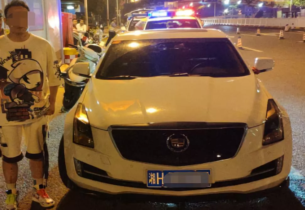 凌晨2時(shí)24分許,深圳交警對(duì)過往車輛進(jìn)行逐一排查時(shí),一輛車牌號(hào)碼為湘H***03的白色凱迪拉克小車緩慢行駛至查車點(diǎn),現(xiàn)場(chǎng)民警上前示意駕駛員開窗。