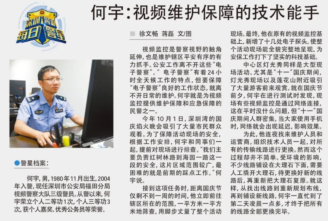 每日警星 | 何宇:視頻維護保障的技術(shù)能手