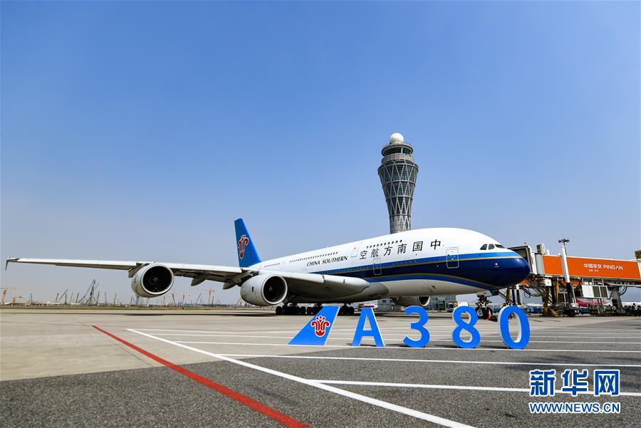 10月27日,南方航空空中客車A380客機??吭谏钲跈C場。當(dāng)日下午,由全球最大寬體客機——空中客車A380執(zhí)飛的南航CZ3153次航班由深圳起飛前往北京,標(biāo)志著這款“空中巨無霸”機型重返深圳機場。南航曾在2014年5月開始啟用A380執(zhí)飛京深航線,后因動態(tài)運力調(diào)配停飛。新華社記者毛思倩攝