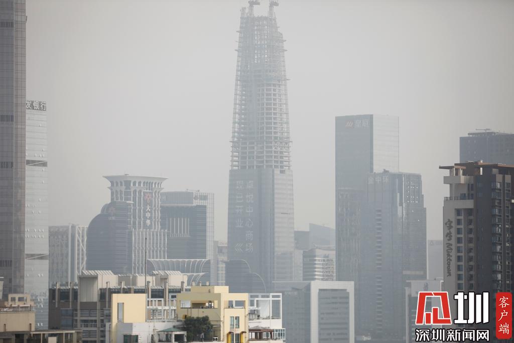 早上9點到10點,福田區(qū)上空呈現(xiàn)灰色。