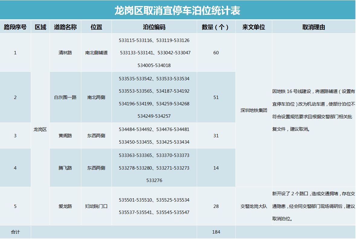 深圳市交通運輸局、深圳市公安局交通警察局表示,本次取消上述6個區(qū)部分宜停車泊位情況公示時間為2019年10月28日-2019年11月26日。在此期間,如對上述調(diào)整方案有任何意見或建議,可通過以下方式反饋: