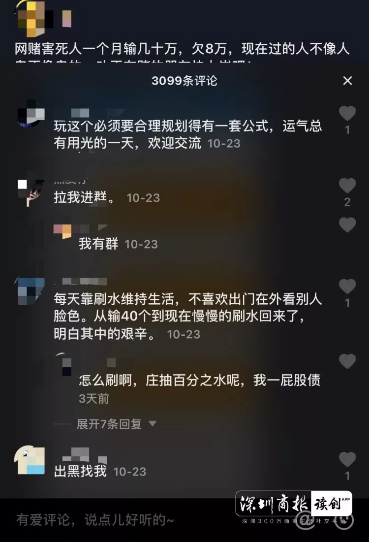 原標(biāo)題:警惕!深圳網(wǎng)友看短視頻被騙300萬!評(píng)論里這些信息千萬別信 靠刷短視頻打發(fā)時(shí)間已成為很多人的習(xí)慣。 殊不知, 騙子也悄悄出現(xiàn)在你的“屏幕”中。 近日有一深圳市民反映稱,其親戚在某平臺(tái)瀏覽短視頻時(shí),發(fā)現(xiàn)了賭博信息結(jié)果被騙300多萬元。 對(duì)此,該短視頻平臺(tái)負(fù)責(zé)人表示,平臺(tái)將堅(jiān)決打擊涉賭視頻、賬號(hào)、評(píng)論,一經(jīng)發(fā)現(xiàn)會(huì)對(duì)違規(guī)內(nèi)容予以清理,此外,對(duì)涉賭用戶予以階段性或者永久封禁處理。 讓你贏一筆“回血”, 放松警惕 300萬并不是一個(gè)小數(shù)字,而騙子是怎樣利用短視頻實(shí)施詐騙的呢? 原來該市民在瀏覽戒賭視頻時(shí)認(rèn)識(shí)了一名網(wǎng)友,接著被引誘至一款賭博類軟件。 該市民講述,剛開始賭博的時(shí)候?qū)Ψ较茸屗A一筆,在滿足他的快感,讓其放松警惕后,就勸說其不斷投錢,并告知其掃二維碼即可提現(xiàn)。 “直到賬戶被轉(zhuǎn)走300多萬元之后,我才意識(shí)到自己被騙。” 在這一類視頻軟件時(shí)中,記者嘗試以“賭“為關(guān)鍵詞搜索,發(fā)現(xiàn)第一條視頻雖然是勸人戒賭,但在下面的評(píng)論中卻大多數(shù)是介紹所謂“回血”(在賭博中指通過某種方法賺回輸?shù)舻腻X的方法)。