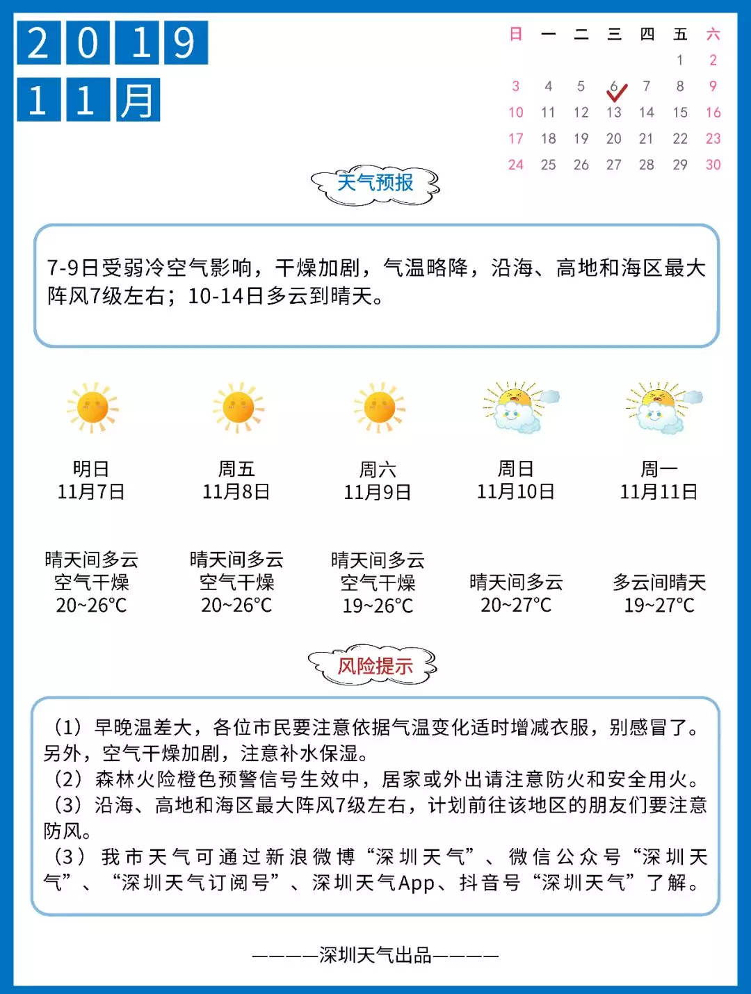 預(yù)計(jì)11月天氣較平穩(wěn),降水偏少,空氣干燥,早晚溫差較大。由于大氣擴(kuò)散氣象條件較差,部分地區(qū)可能會(huì)出現(xiàn)灰霾天氣。雖然目前深圳的冷空氣,好像都不太給力,但是降溫這事誰說得準(zhǔn)呢,所以,要注意增添衣物啊~