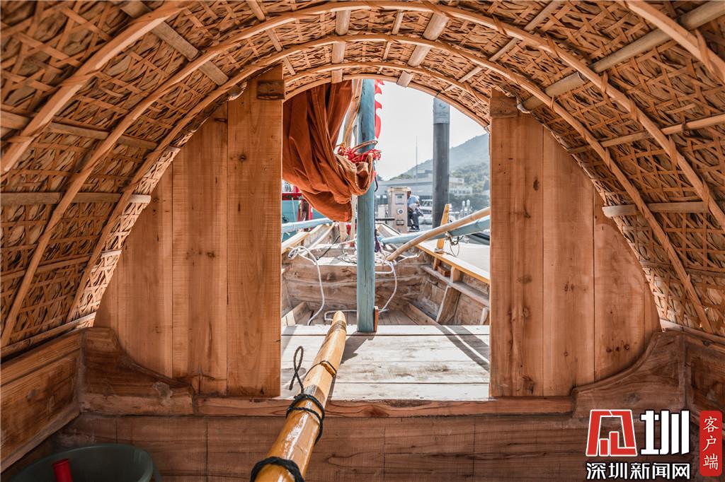 此外,來自遼寧省盤錦市的門錠船“遼河口號”的桅桿上寫著7個字——大將軍八面威風(fēng),分別用赤橙黃綠青藍(lán)紫七色進行涂裝,“遼河口號”建造人張興華說道:“船就像大將軍一樣,能掌控八面風(fēng),帶來充足的力量,盼個好兆頭?!苯ㄔ臁斑|河口號”的木材都是經(jīng)過精挑細(xì)選的,工藝也得到改善升級,“這艘船我們保留了最古老的傳統(tǒng)技藝,也加入了這三十多年來我們的研究成果,改良水密隔艙技術(shù)、船板黏合劑等,讓木帆船身更安全、更耐用。”這是張興華第二次復(fù)原門錠船,為了達到8米左右的尺度要求,他將原有的雙桅改為單桅。來到中國杯帆船賽的現(xiàn)場后,張興華與團隊伙伴已經(jīng)駕駛著“遼河口號”進行了巡航,“北方的傳統(tǒng)風(fēng)船能夠到深圳的大亞灣海域來航行,這應(yīng)該是第一次,感覺很不錯!”張興華介紹,在遼寧渤海一帶,還有非常多漁民在使用著木船,但他們也已經(jīng)幾十年沒有見過中國人自己的木帆船了,這次在中國杯賽場上的展示,希望讓更多的中國人看到我們自己的帆船!