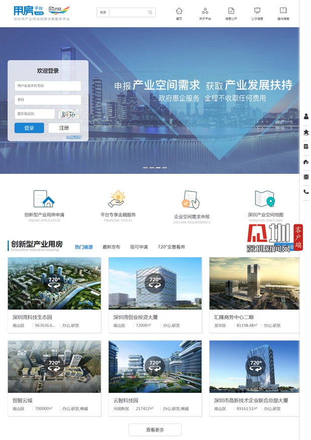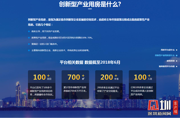 記者在平臺官網(wǎng)看到,平臺不僅提供創(chuàng)新型產(chǎn)業(yè)用房申請入口、平臺專享金融服務、企業(yè)空間需求申報,還設有深圳產(chǎn)業(yè)空間地圖、720度全景看房,頁面簡潔直觀。