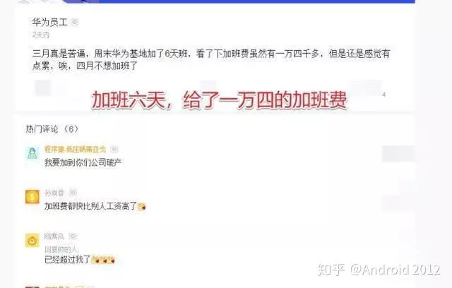 曾有華為員工在網(wǎng)上表示,華為基地加了6天班,看了下加班費(fèi),雖然有14000多,但還是感覺有點(diǎn)累,4月不想加班了。