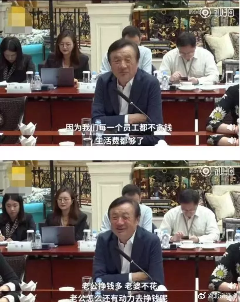 5月21日,任正非在華為總部接受采訪時(shí),談到華為每年花200億美元在研發(fā)上,即使華為財(cái)務(wù)受到一點(diǎn)挫折也不會(huì)影響科研投入,因?yàn)閱T工都不貪錢,生活費(fèi)都?jí)蛄??!澳闳柹莩奁返昀镔I幾個(gè)包的,老公是哪里的?華為的。老婆不花,老公怎么有動(dòng)力去掙錢呢?”