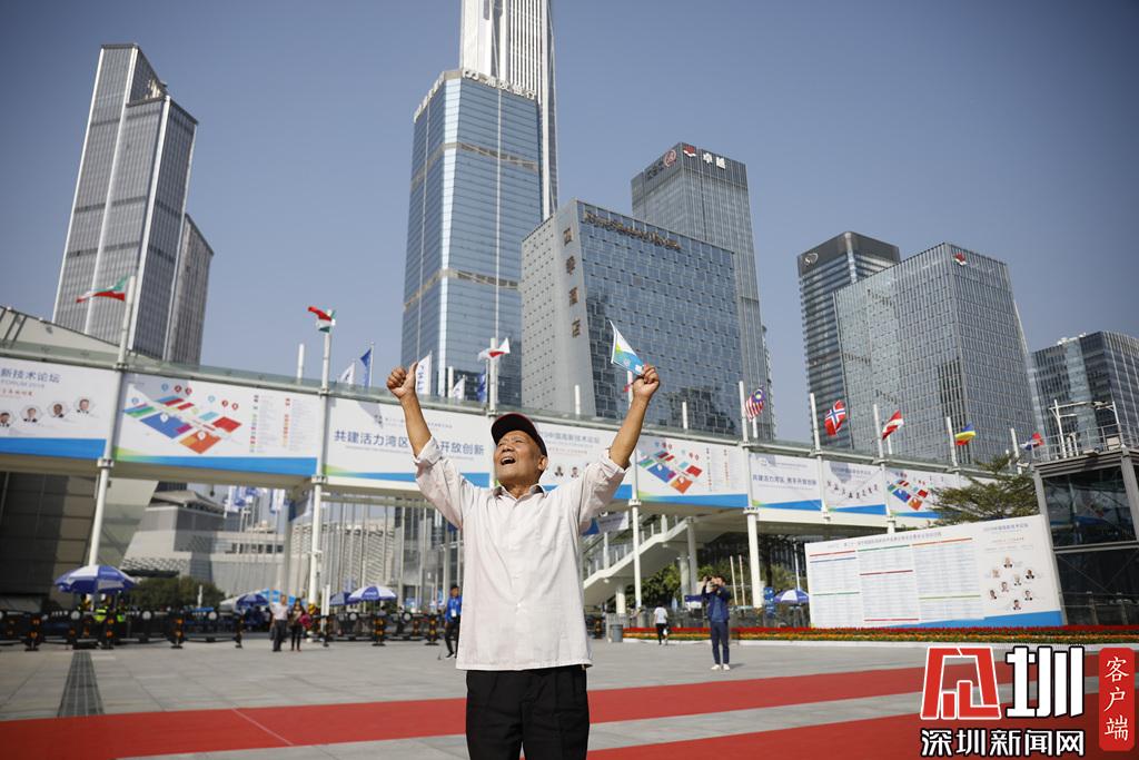 2019年11月14日,深圳會展中心,羅先生的兒子正在為他拍照。