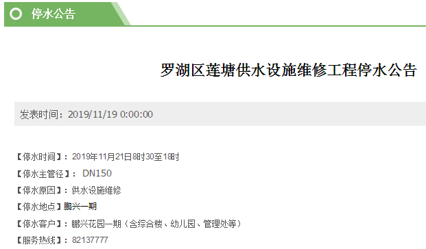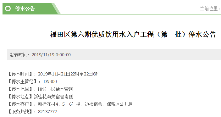 停水時(shí)間:11月21日8時(shí)30分至18時(shí)