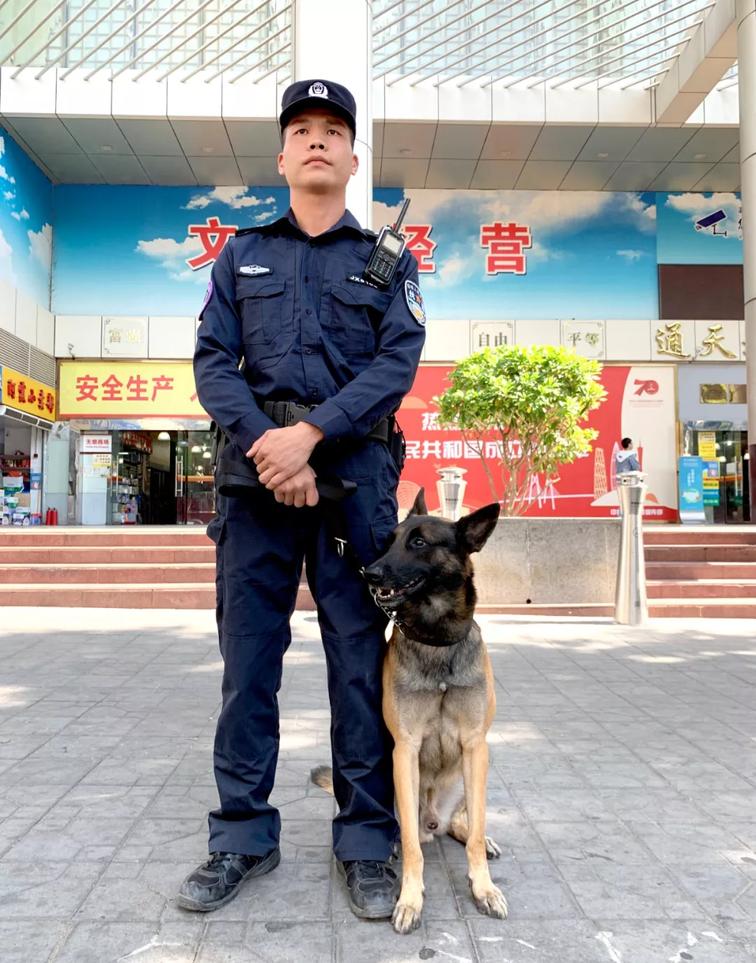 1999年出生、剛滿(mǎn)20歲的岳文健,是福田分局機(jī)訓(xùn)大隊(duì)警犬中隊(duì)的一員。去年剛畢業(yè)的他,在今年3月加入警犬中隊(duì),成為隊(duì)伍中最小的隊(duì)員。