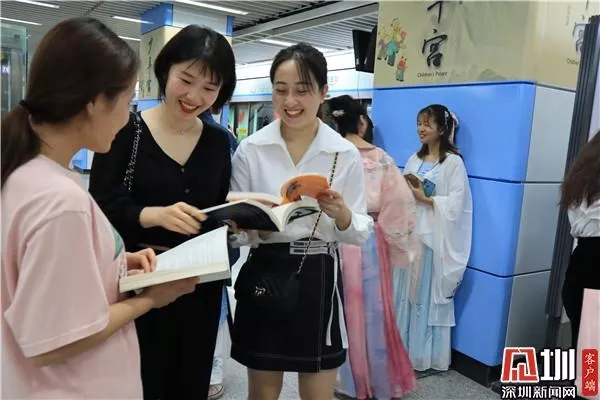 2019年11月17日下午,深圳地鐵2號線和3號線上,百余名熱愛讀書的市民朋友手捧書籍在列車行進過程中安靜閱讀,不少乘客自發(fā)加入。據(jù)悉,活動由深圳地鐵集團發(fā)起,聯(lián)合民間公益社團“漢服深圳”,通過地鐵閱讀“快閃”這樣別出心裁的行為藝術(shù),旨在喚醒城市人群的閱讀意識,利用搭乘地鐵的碎片化時間學習,或是在嘈雜與匆忙的情景下找到內(nèi)心平和,共同營造“書香地鐵”的閱讀氛圍。